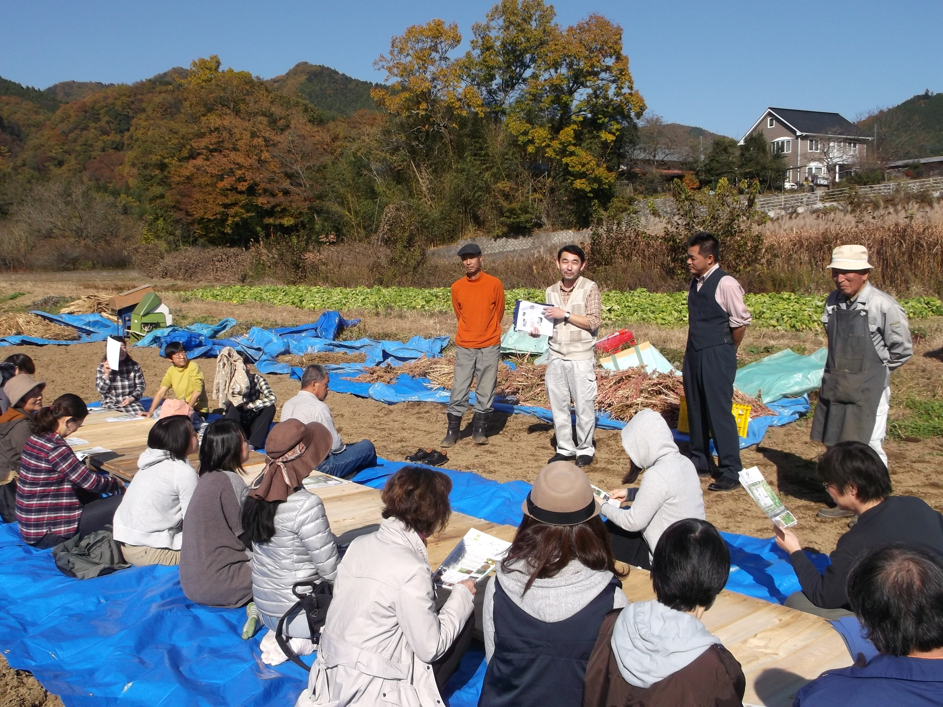 キヌアの収獲体験で弊社の圃場でひらかれました。京都桂高校の佐藤先生の桂高校での取組などの貴重なお話も伺いました